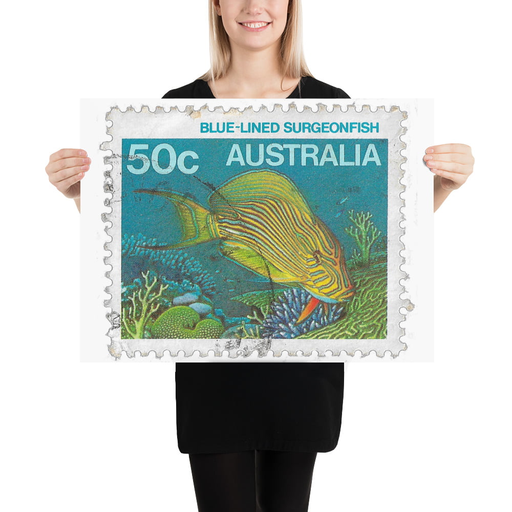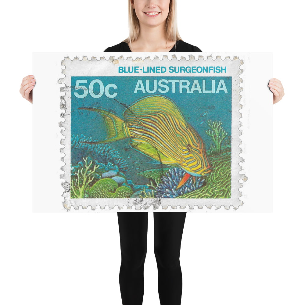 Vintage 1980 Australia Blue-Lined Surgeonfish Stamp Poster