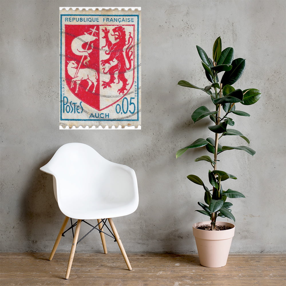 Vintage 1980 France Stamp of Griffin & Sheep Poster