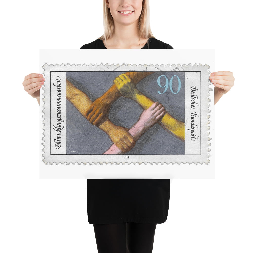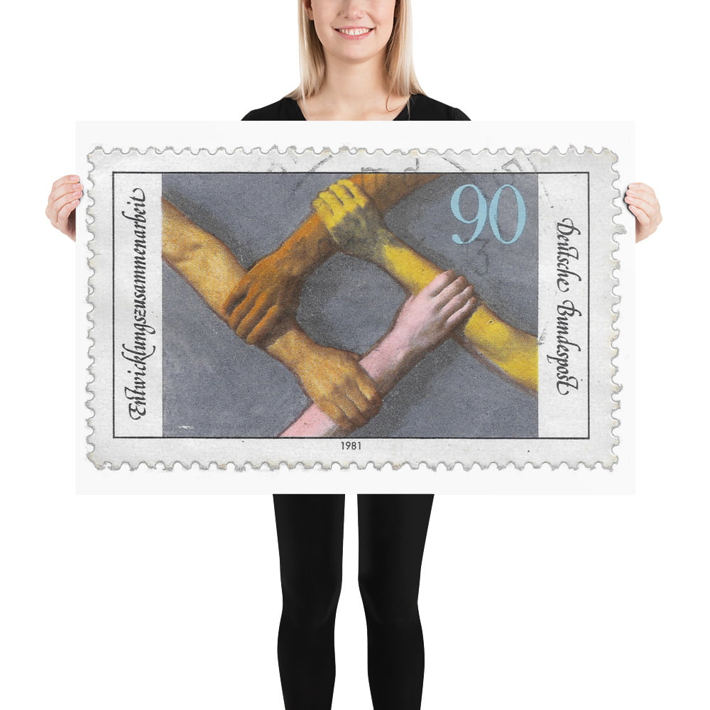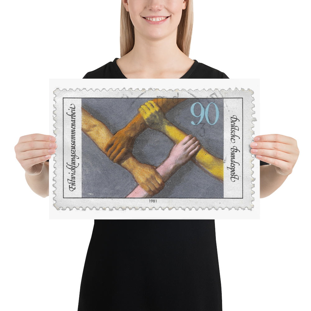 Vintage 1981 German Stamp for Development & Cooperation Stamp Poster