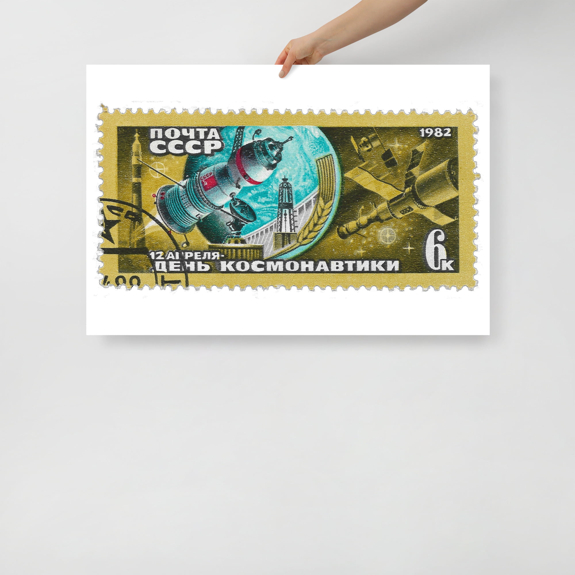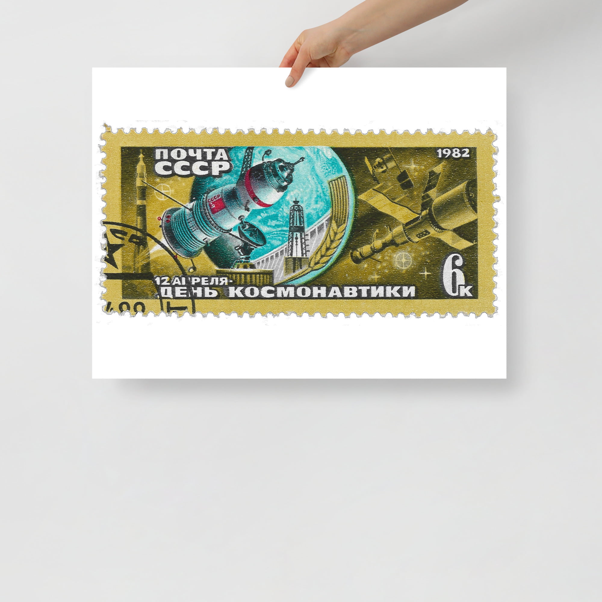 Vintage 1982 Russia Space Program Stamp Poster