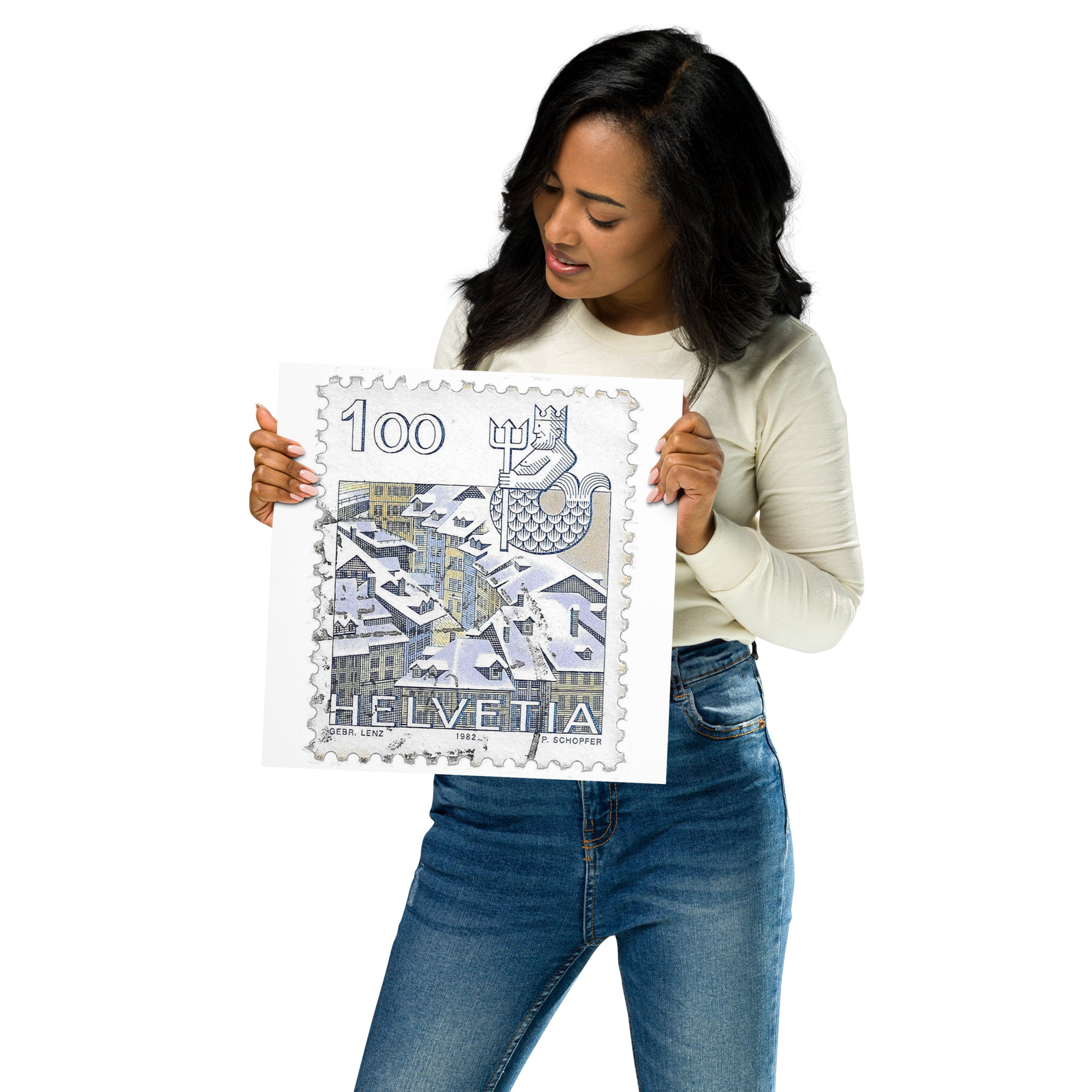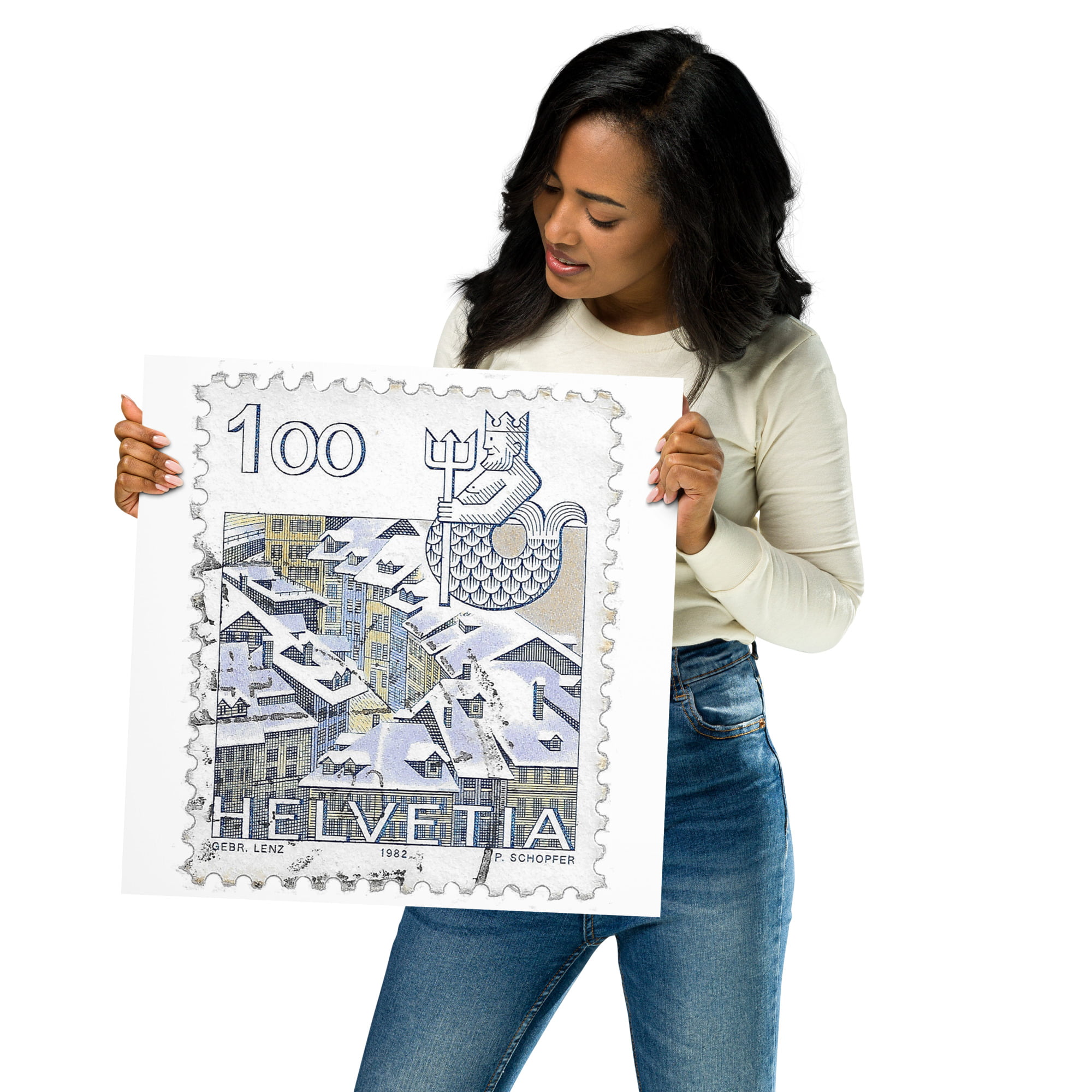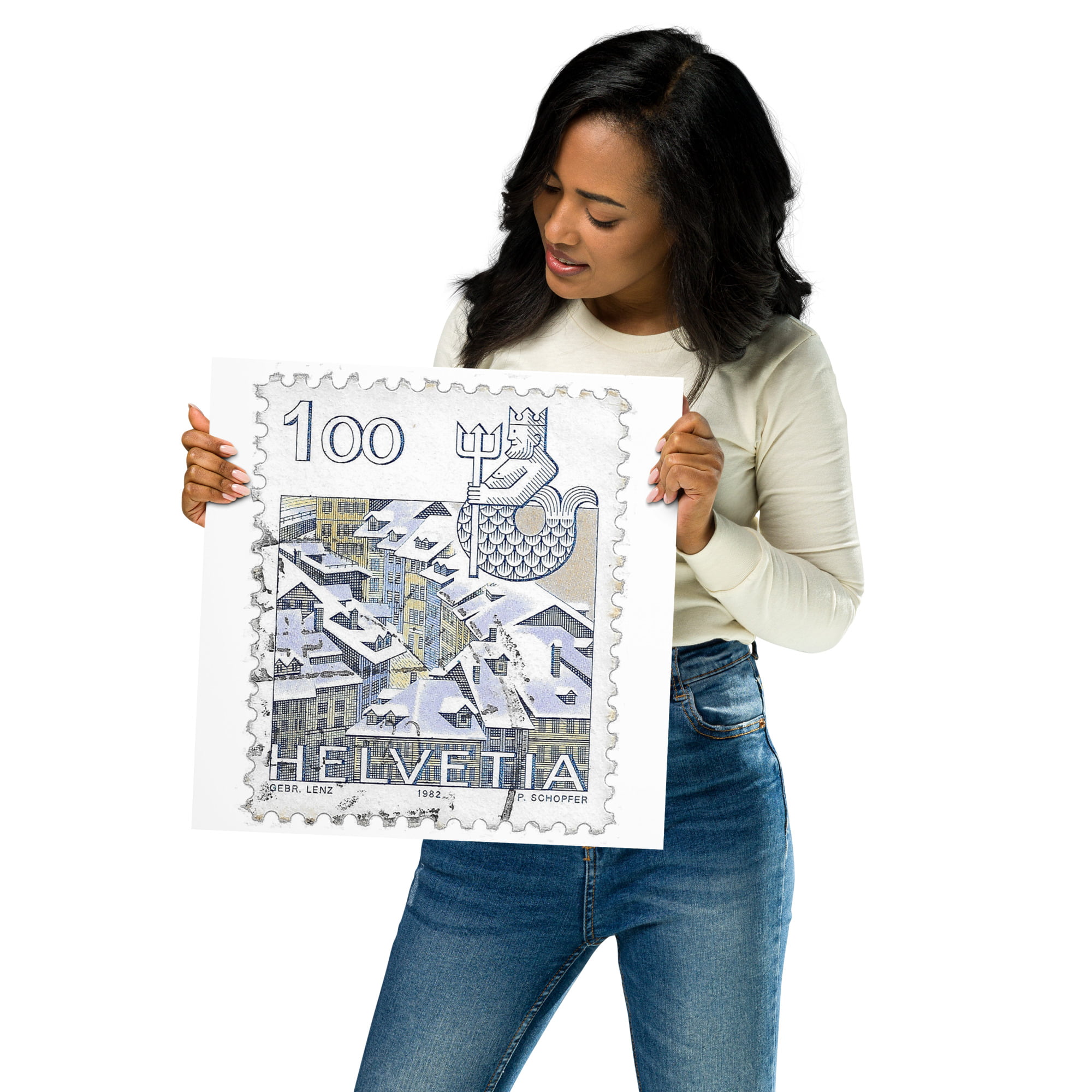 Vintage 1982 Switzerland Helvetia Stamp Poster