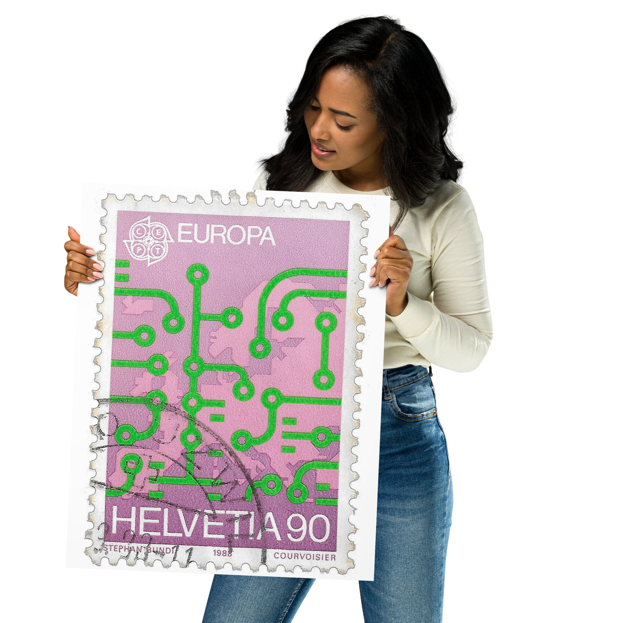 Be the first to review “Vintage 1986 Switzerland Helvetia A90 Stamp Poster”