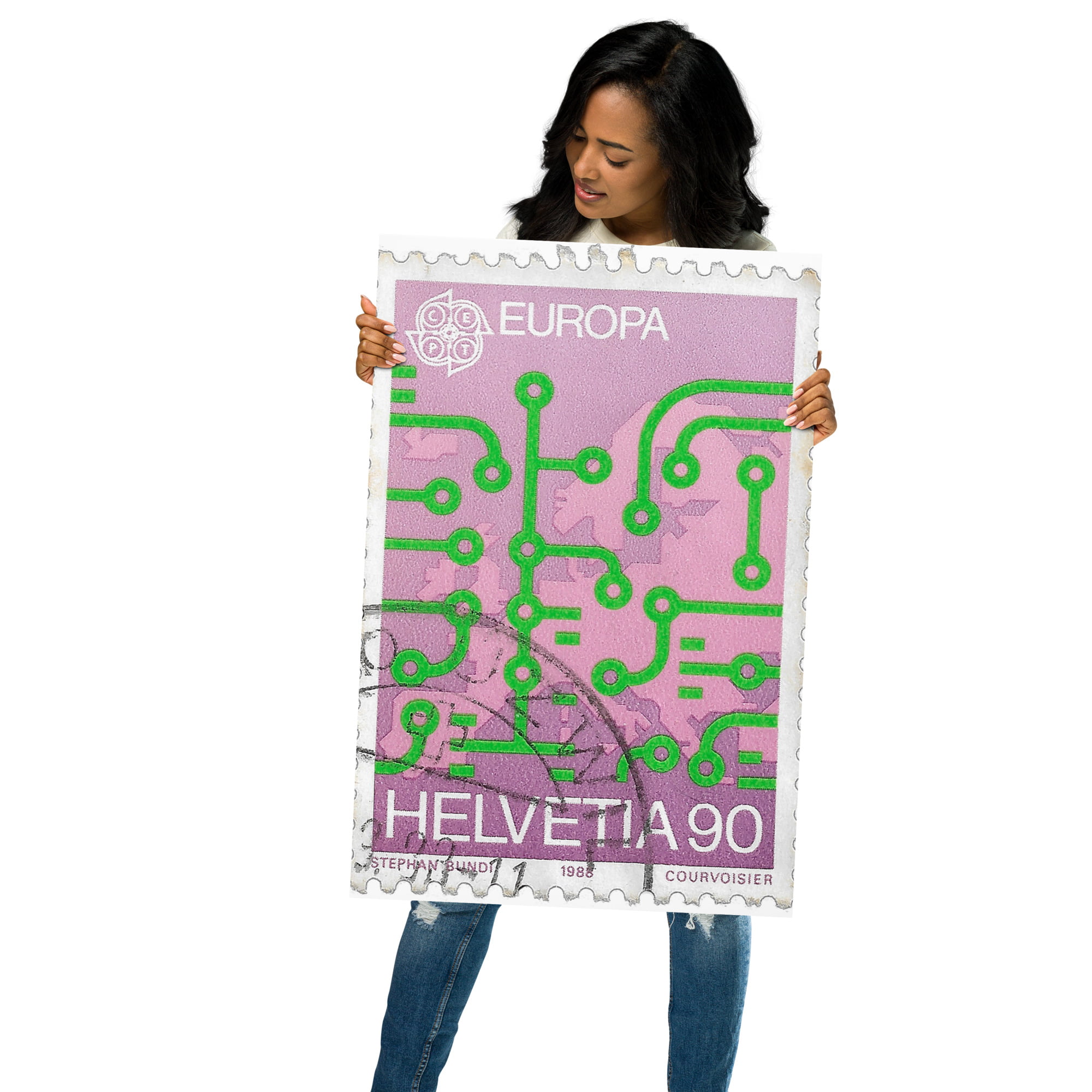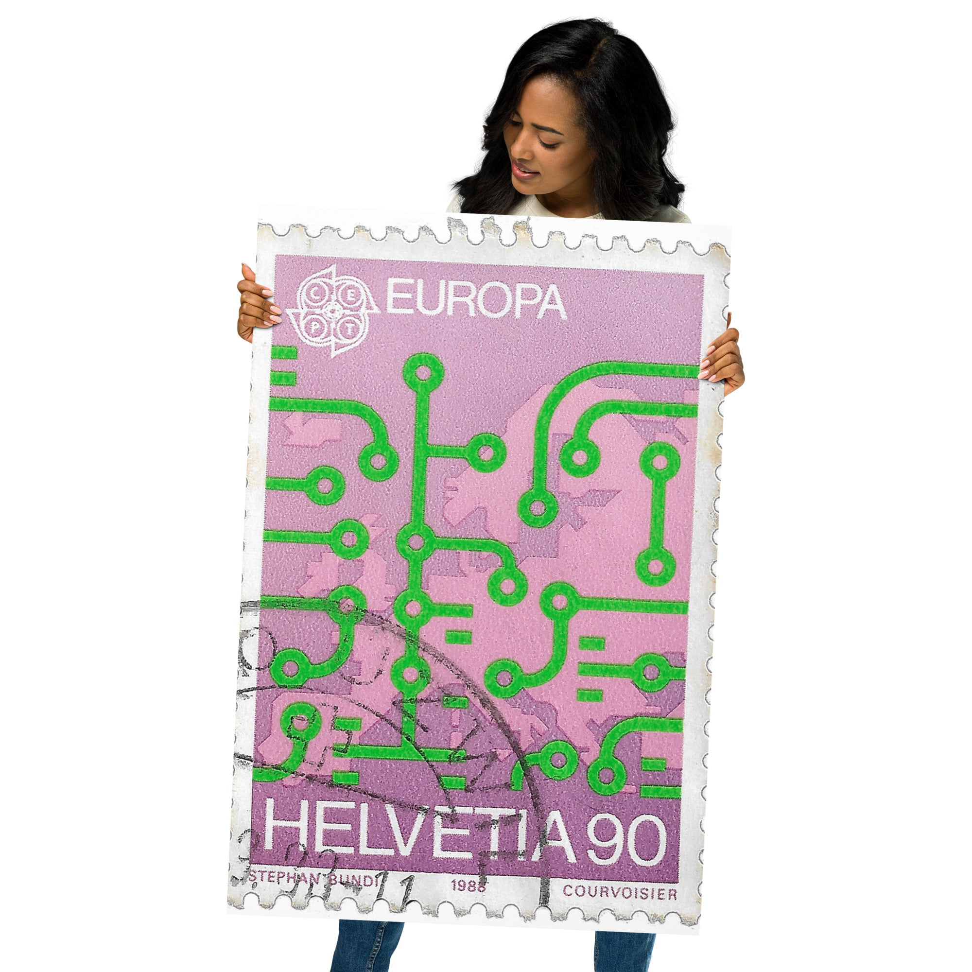Vintage 1986 Switzerland Helvetia A90 Stamp Poster