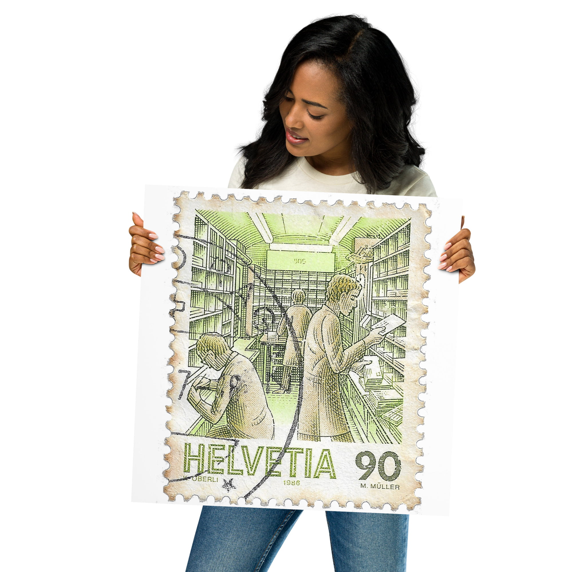 Vintage 1986 Switzerland Helvetia Stamp Poster