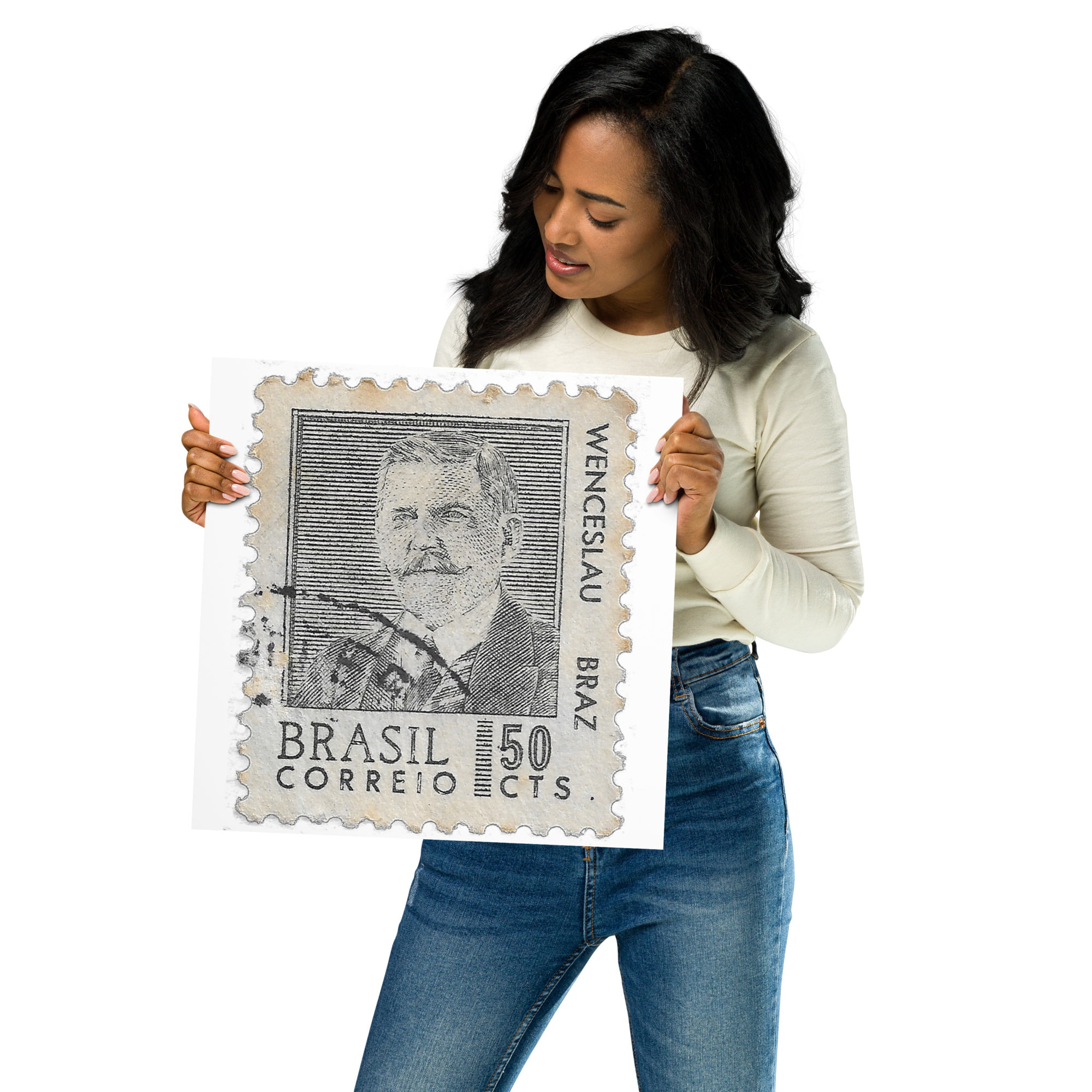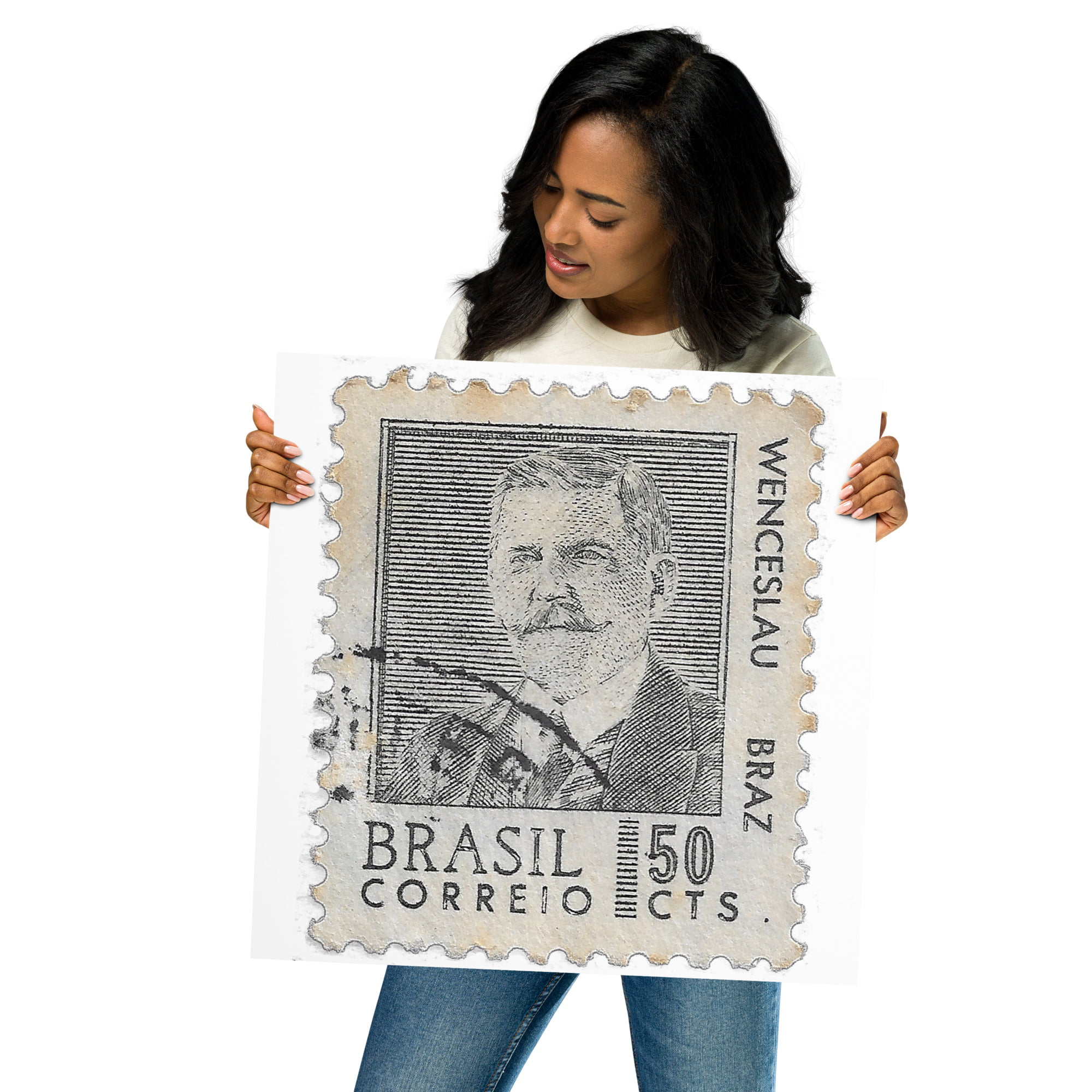 Vintage Correio Brasil 50 CTS Postal Stamp Poster